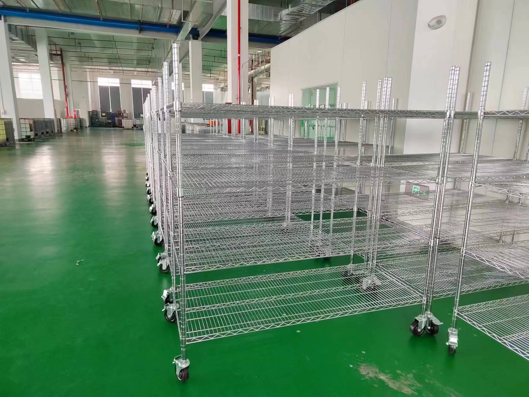 南通某精密電子公司,防靜電置物架驗(yàn)收結(jié)束,每層配置金屬夾片,黑色防靜電腳輪。